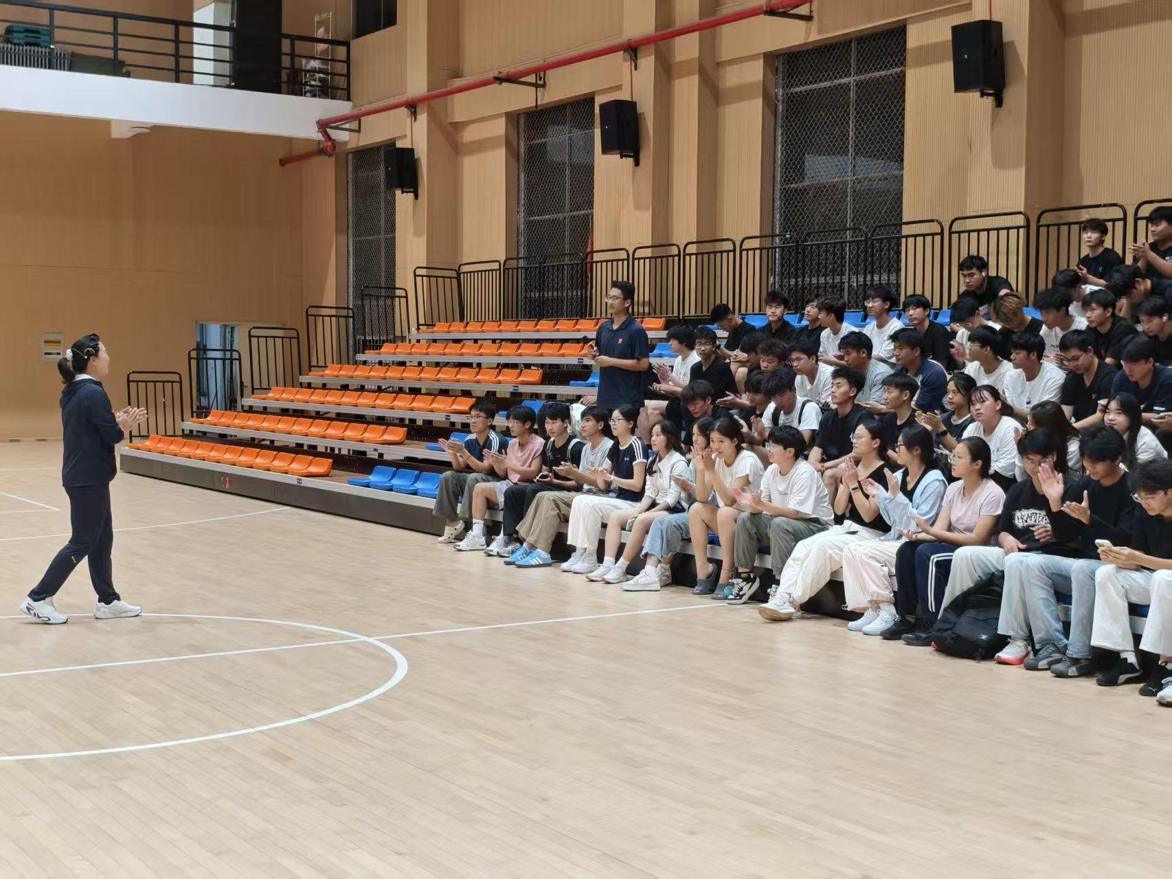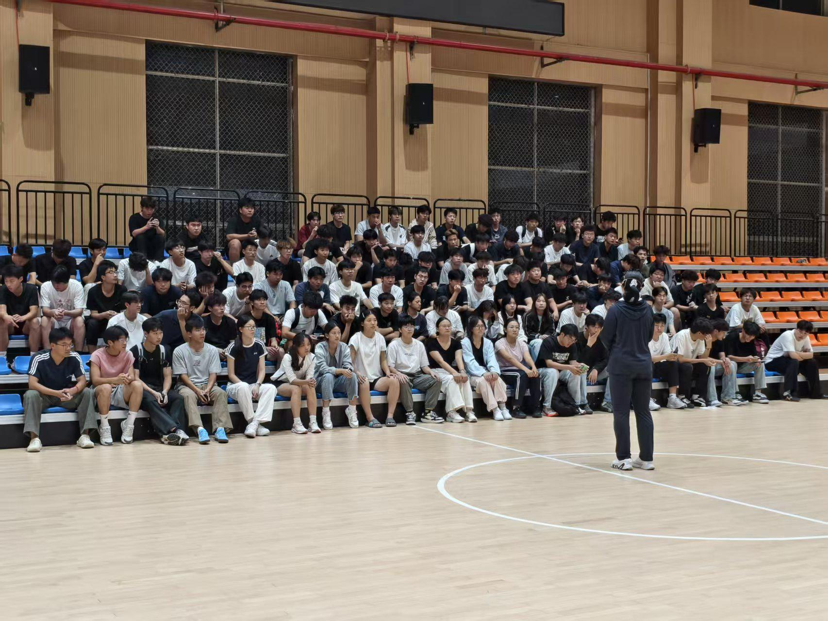 为引导新生尽快适应大学学习生活,筑牢心理健康防线,9月29日晚七点,体育学院根据学校大学生心理健康教育中心统一安排,于室内篮球馆有序开展2025级新生“心理健康教育第一课”主题讲座。本次讲座由学工办主任孙烨主持,特邀学院馨灵驿站心理咨询师郭荣娟主讲,全体2025级新生参会,覆盖学生239人。