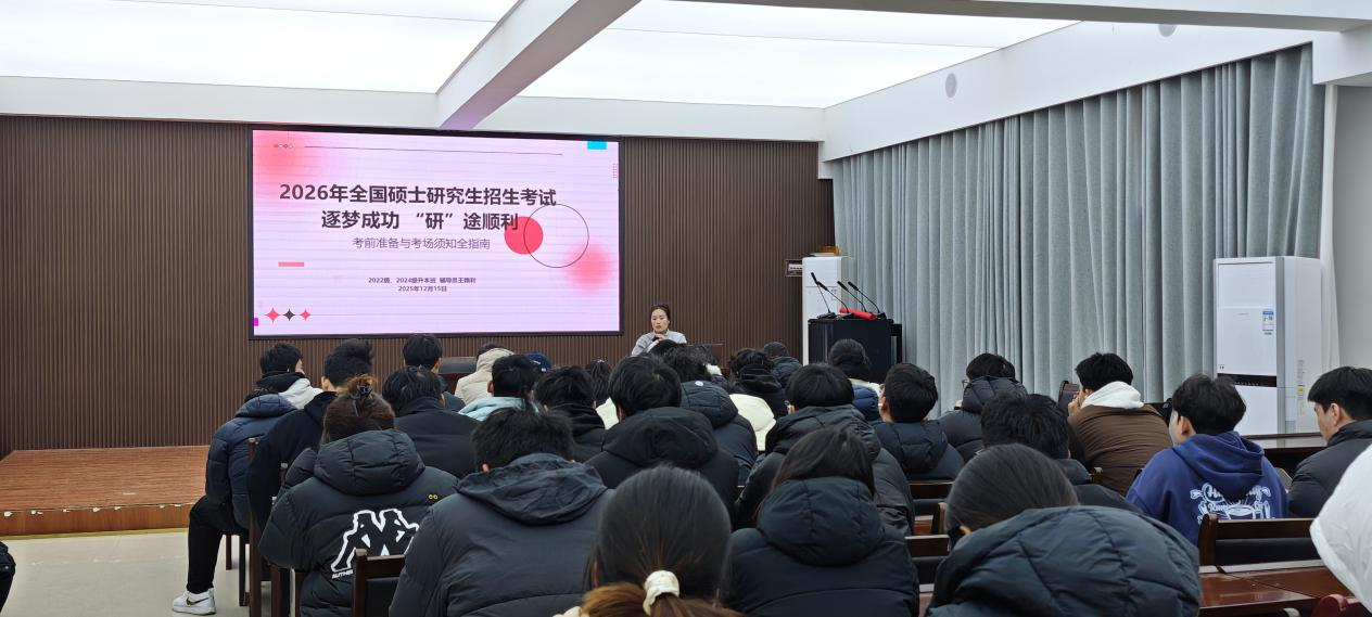 为帮助考研学子缓解备考压力、明确考前注意事项,凝聚冲刺力量,2025年12月15日下午,体育学院举办“逐梦成功 ‘研’途顺利”考研考前注意事项和加油会。2022级及2024升本班全体考研学生参会,辅导员王艳利主持会议并送上暖心叮嘱。