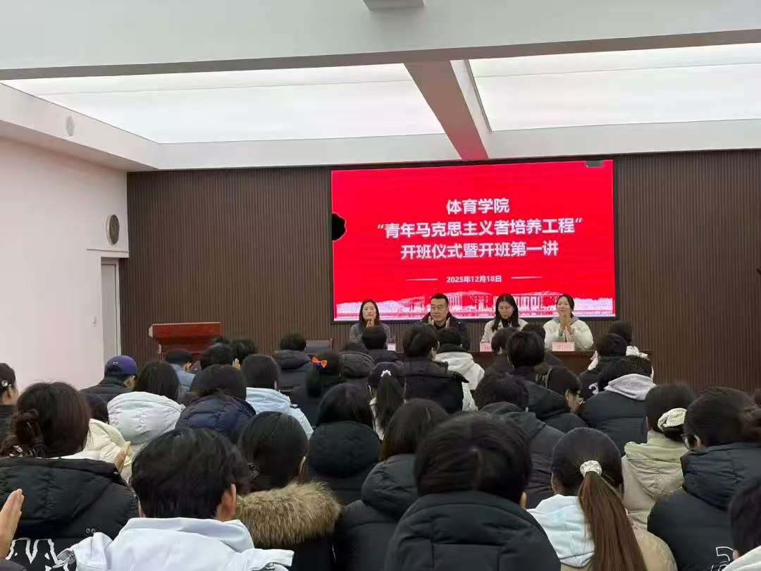 为深化青年思想政治引领,锻造高素质团学骨干队伍。12月18日体育学院在121会议室举行2025年“青年马克思主义者培养工程”开班仪式暨开班第一讲。本次活动由学院团委书记杨冉冉主持,院党委副书记孟琛博、辅导员代表出席,学院团学骨干齐聚一堂、共赴此次成长之约。