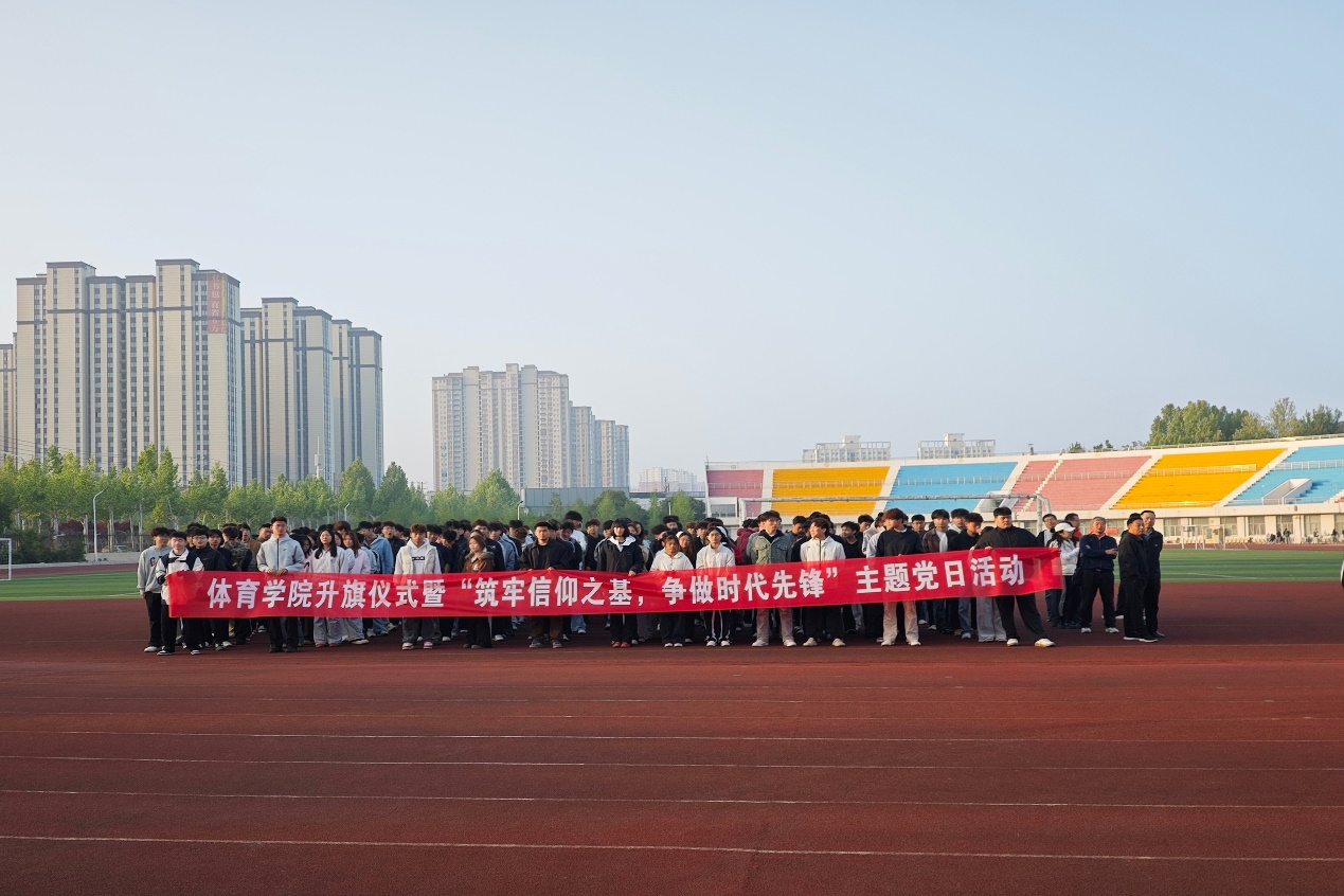 为深入开展理想信念教育,厚植师生爱国情怀,引导青年学子坚定信仰、勇担使命。4月13日清晨,体育学院在梁园校区田径场举行升国旗仪式暨“筑牢信仰之基,争做时代先锋”主题党日活动。商丘师范学院学生处副处长卢剑平、奖助贷管理科副科长高政,体育学院领导班子、全体辅导员、班主任代表及全体学生参加本次活动。本次升旗仪式由学生代表张杰豪、傅陈果主持。
