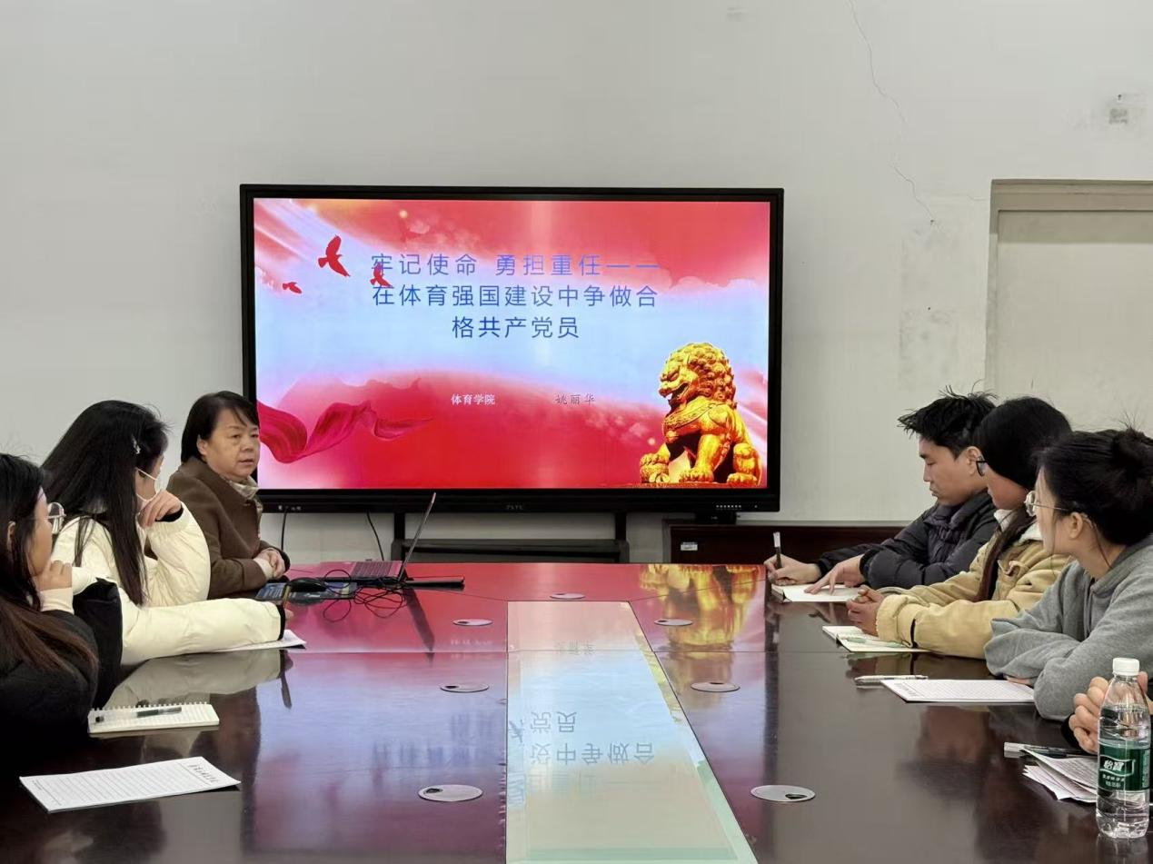 为进一步加强预备党员的教育培养,提升预备党员的党性修养和责任意识,2025年12月9日,体育学院分党校组织开展第22期预备党员中期培训。学院院长姚丽华以“牢记使命 勇担重任——在体育强国建设中争做合格共产党员”为主题,为全体预备党员带来了一堂深刻且富有启发的专题党课。