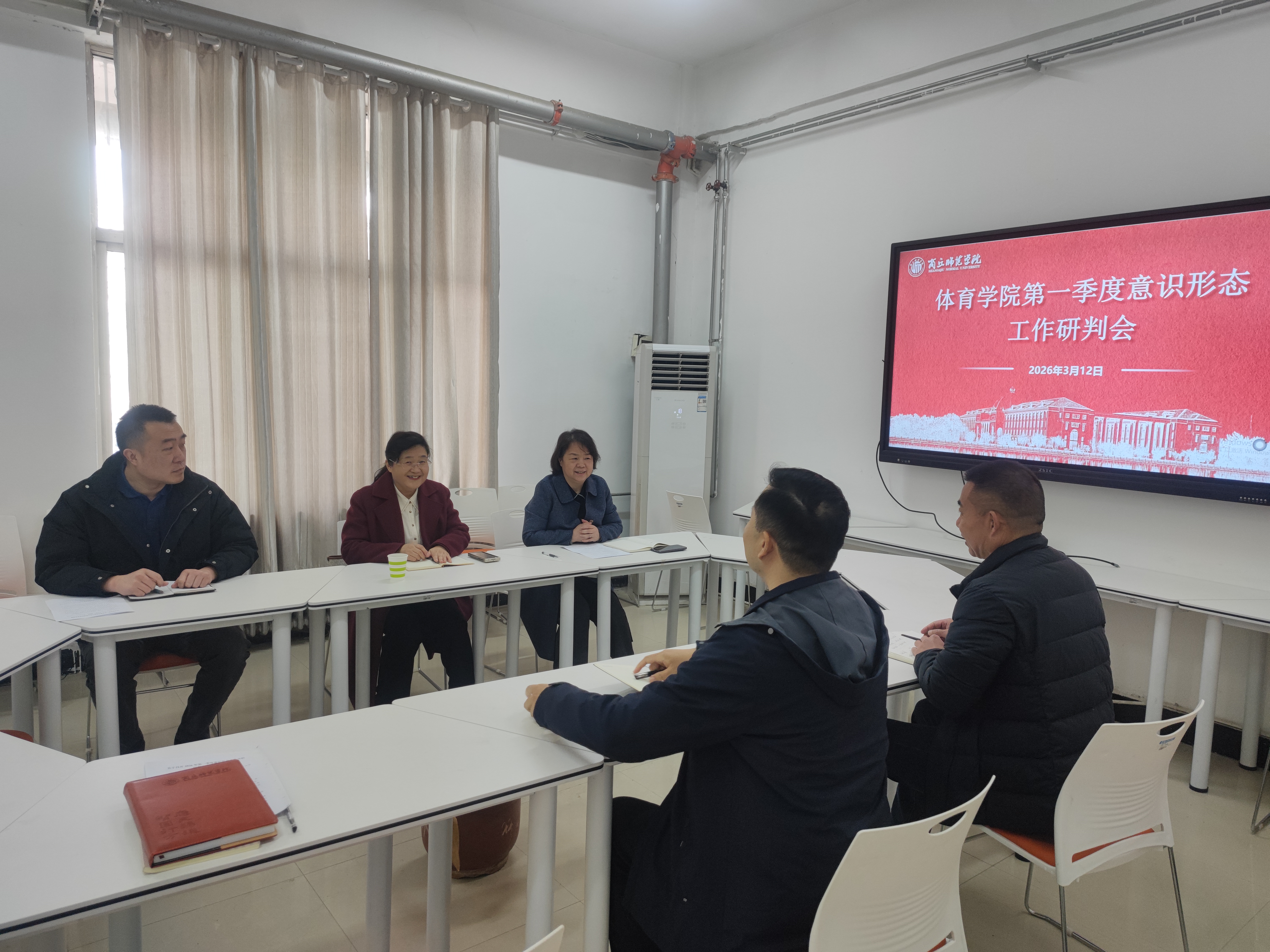 3月12日上午,我院在梁园校区体育学院113会议室召开2026年第一季度意识形态工作分析研判会。副校长韩桂玲莅临指导,学院领导班子成员、师生党支部书记、辅导员代表参加会议,院长姚丽华主持会议。
