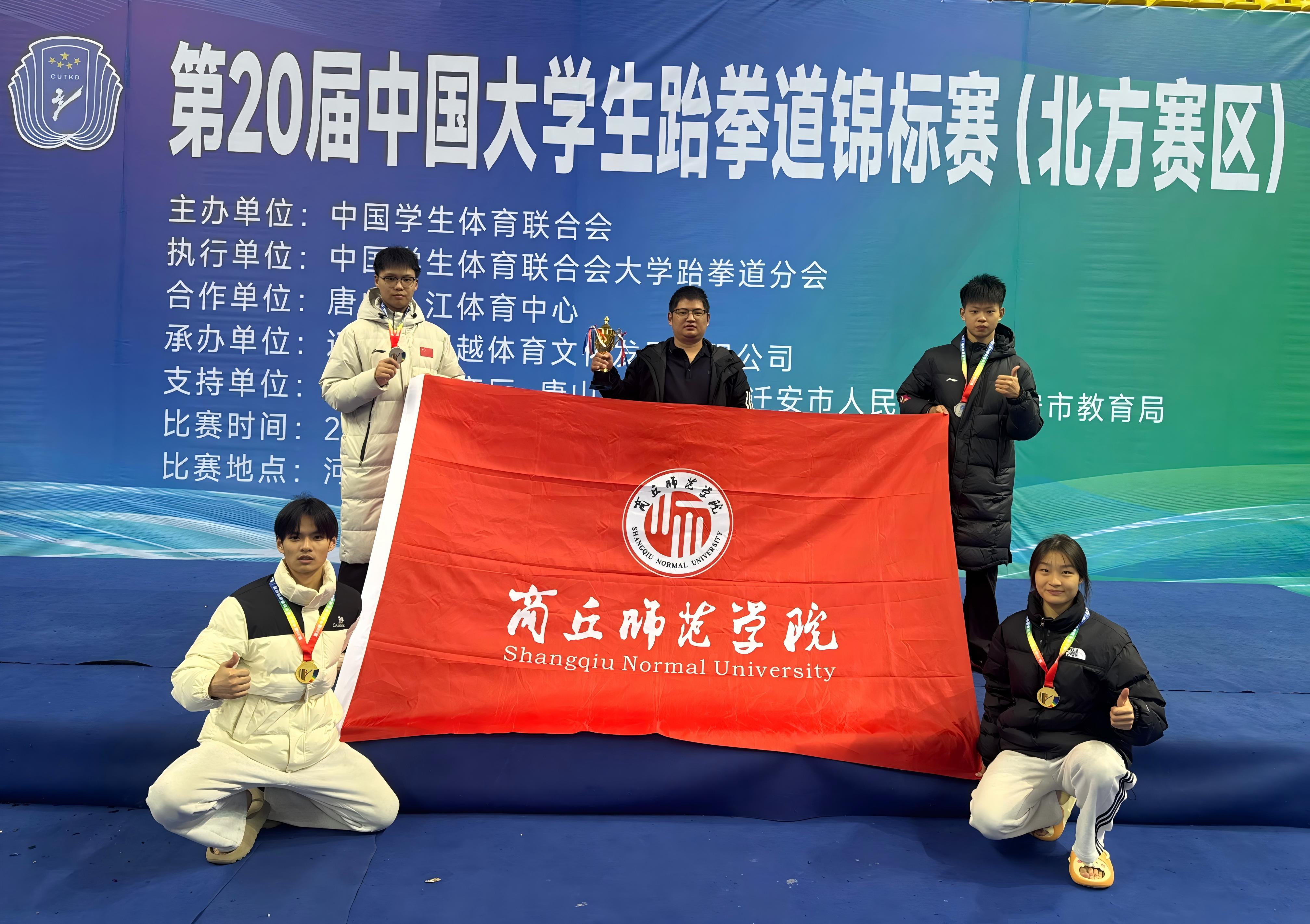 我校跆拳道队4名运动员奋勇拼搏,最终斩获2金、2银。队员蒋晓炜荣获“优秀运动员”称号。队员们的出色表现,不仅展现了商丘师范学院学子昂扬向上的精神风貌,也充分体现了我校“竞赛、教学、训练”一体化育人模式的扎实成效。