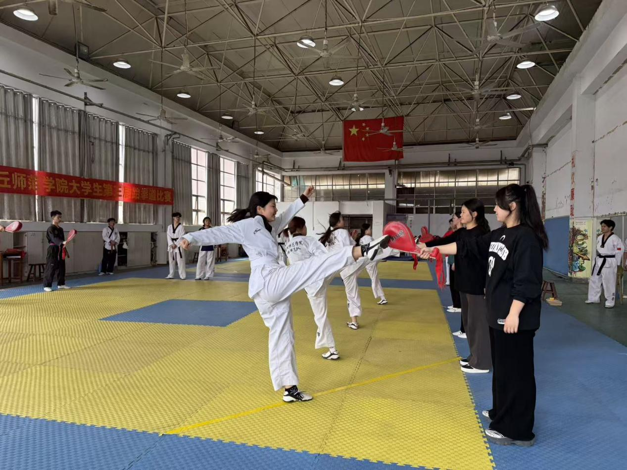 3月27日下午,商丘师范学院第三届跆拳道锦标赛在梁园校区跆拳道馆举行。本次赛事由校体育运动委员会主办,来自全校19个学院的127名运动员参加比赛。