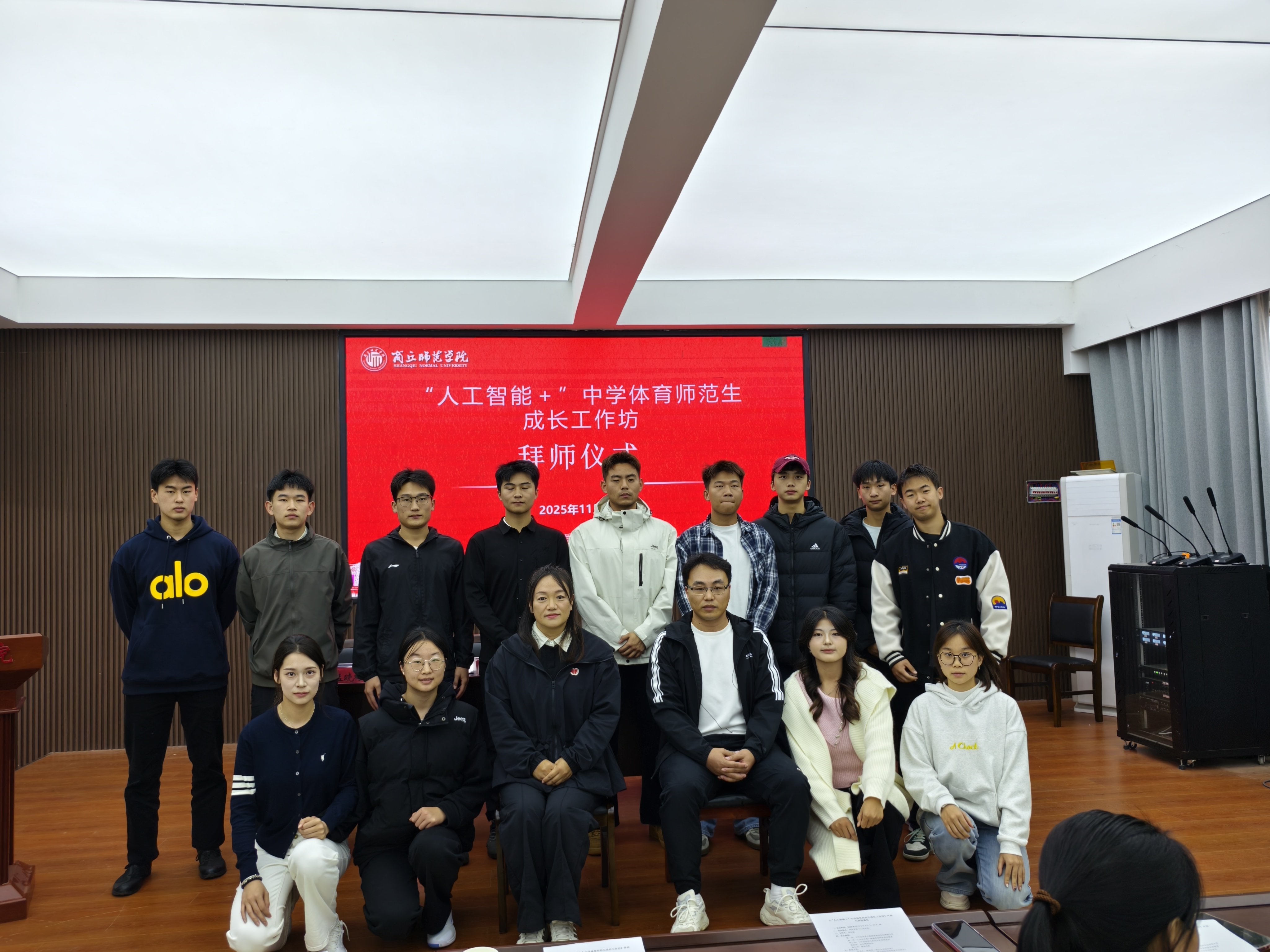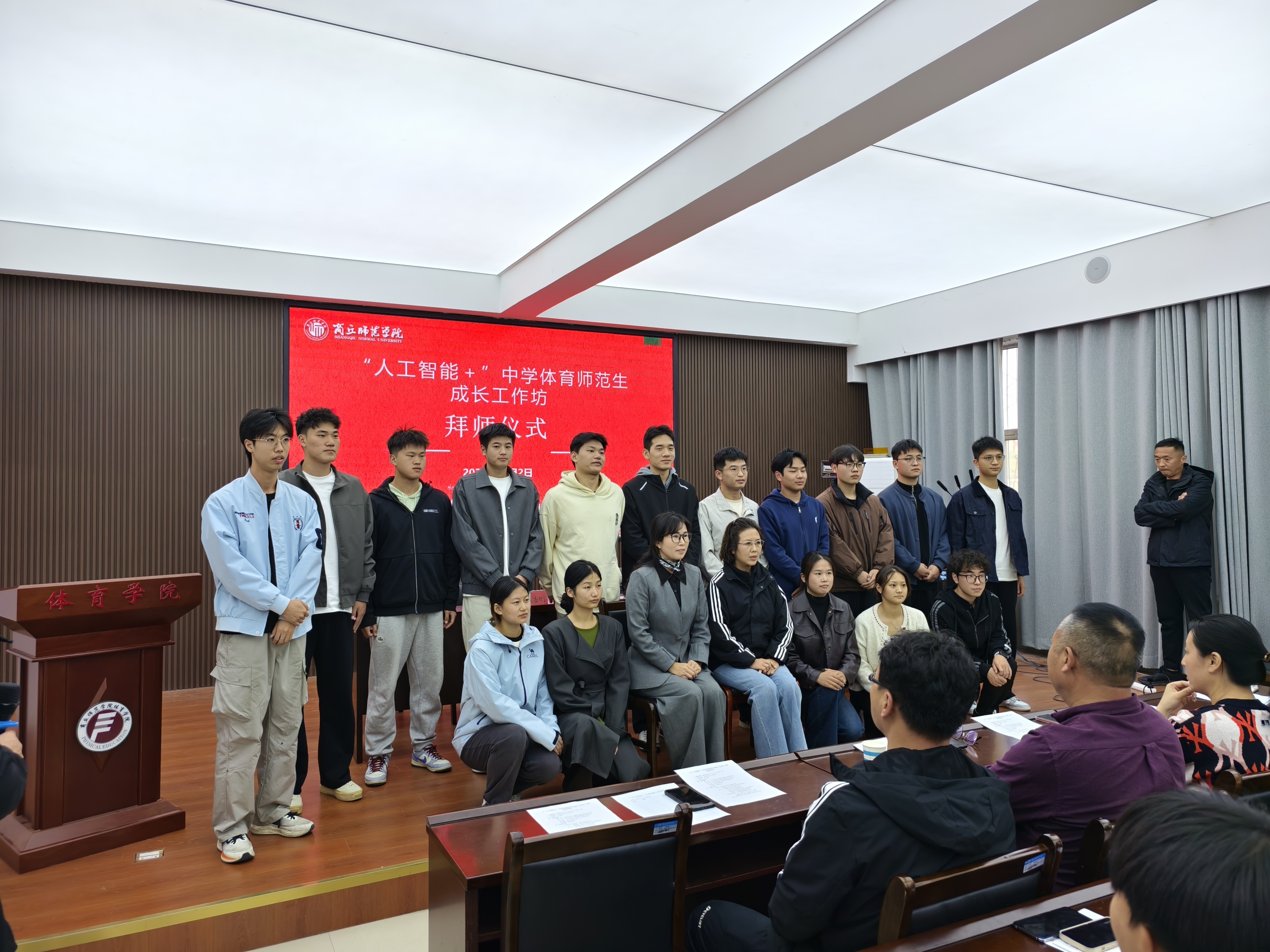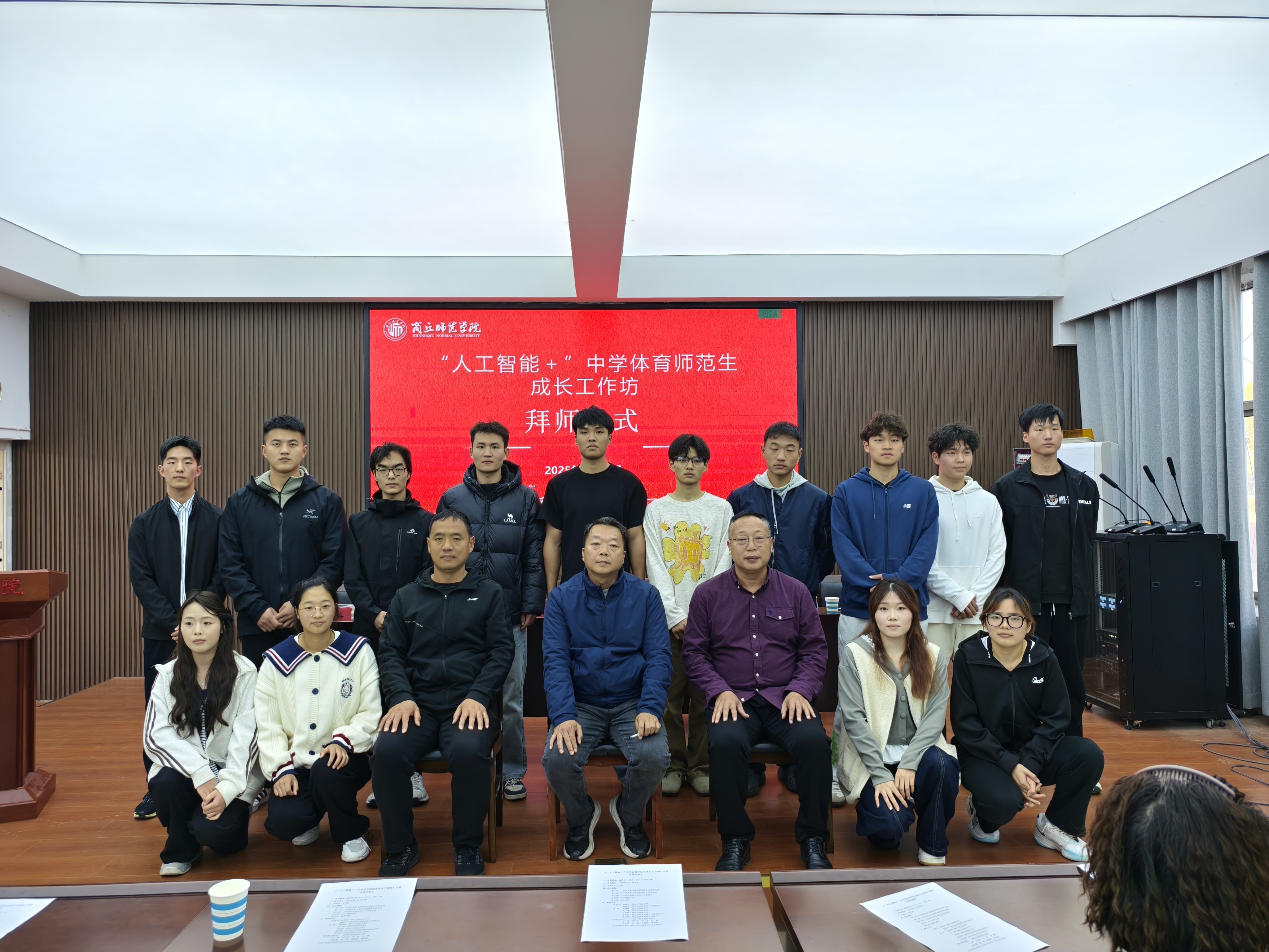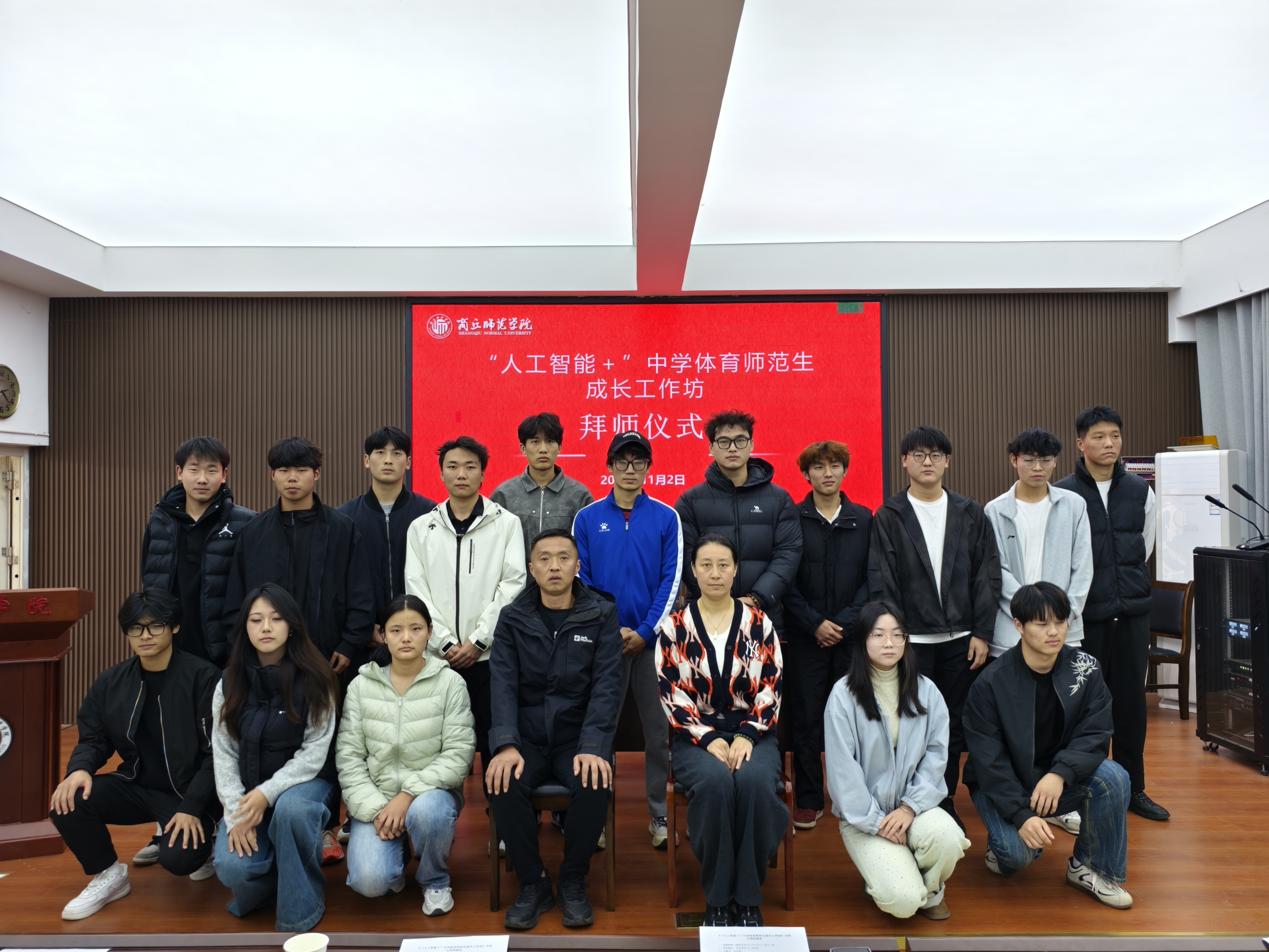 2025年11月2日,在体育学院121会议室举行23级“人工智能+”中学体育师范生成长工作坊拜师仪式。体育学院院长姚丽华、副院长蔡浩刚、工作坊坊主耿爱英、孟晓梅、佘博、马军伟、2023级全体坊员以及8名校内指导老师参会,此次活动由工作坊校内指导老师毕传新主持。