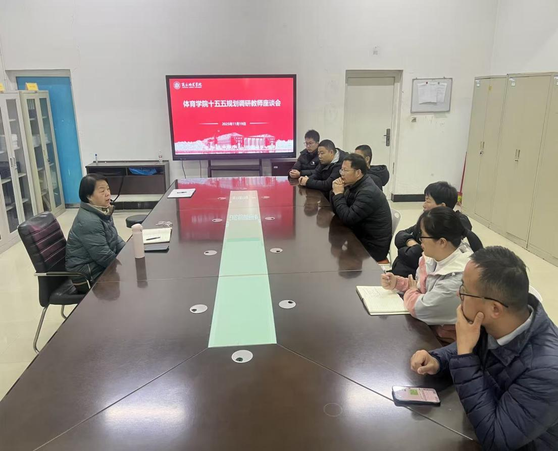11月下旬,体育学院121会议室召开“十五五”规划调研座谈会,会议由体育学院院长乔广礼主持,院长姚丽华、各教研室主任与成员、全提行管人员参加了会议。