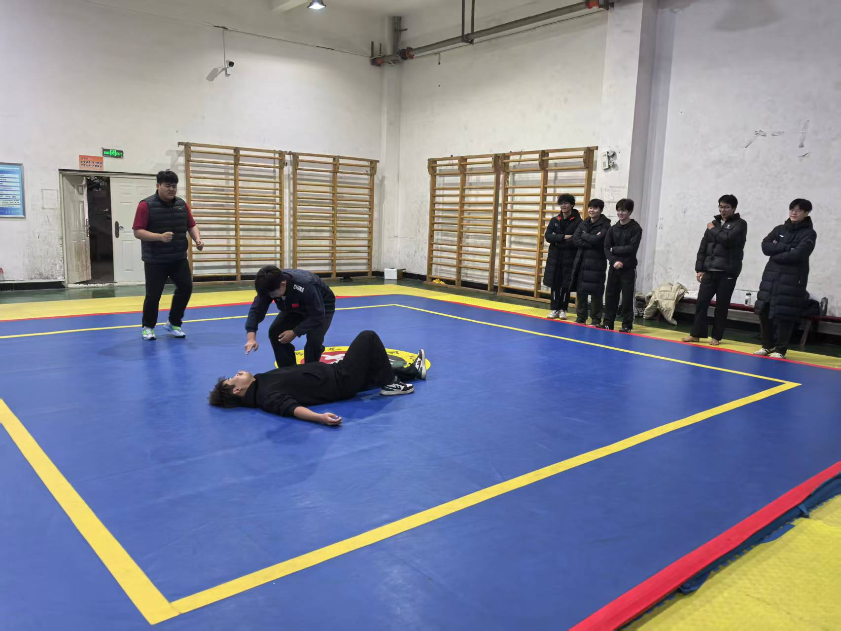 2025年12月11日下午第五节,体育学院王辉老师进行了《散打专选一》课程公开课,本节课教学采用混合式教学与传统教学结合的方式进行。